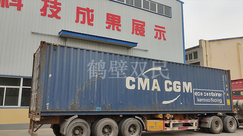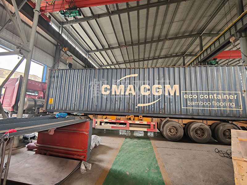 集装箱在卡车的运送下,倒入车间,卸载到地上。