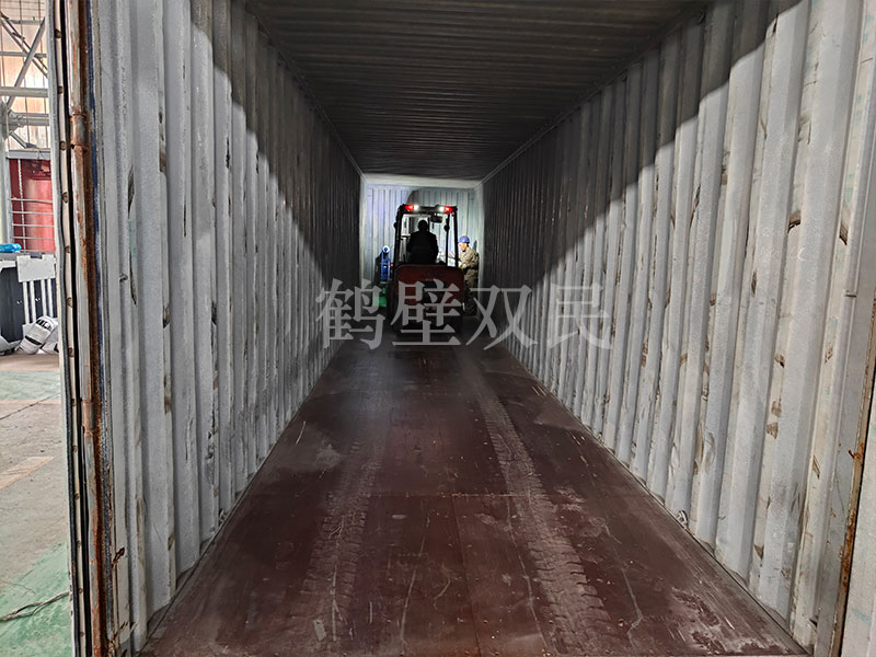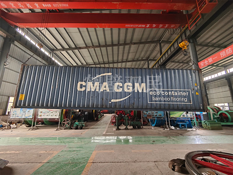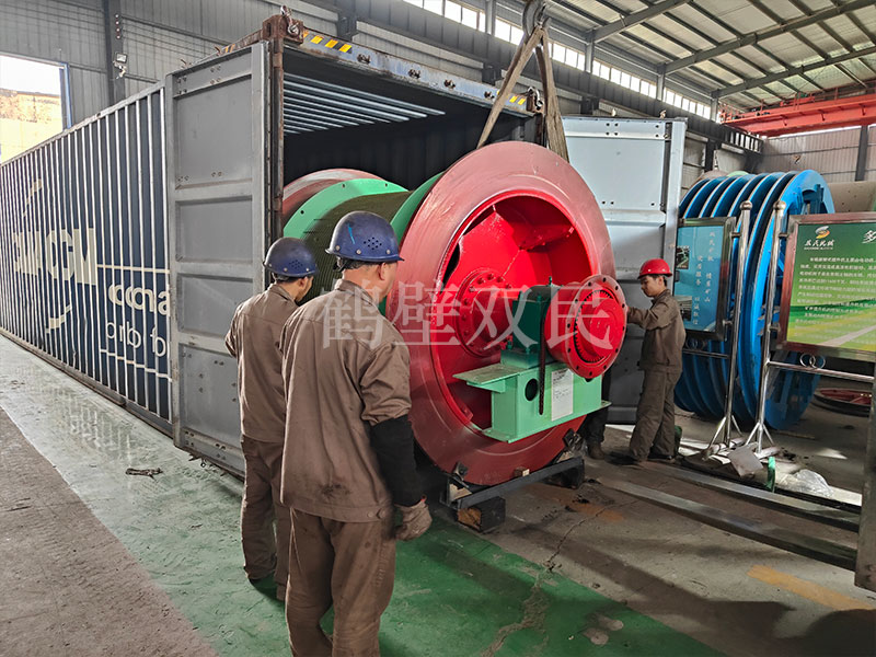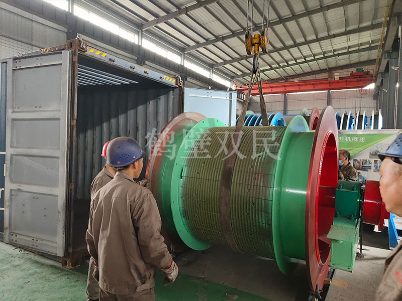 就剩下卷筒了,经过几次努力,终于将卷筒装入集装箱内。完成了本次矿用提升绞车的装箱工作。
