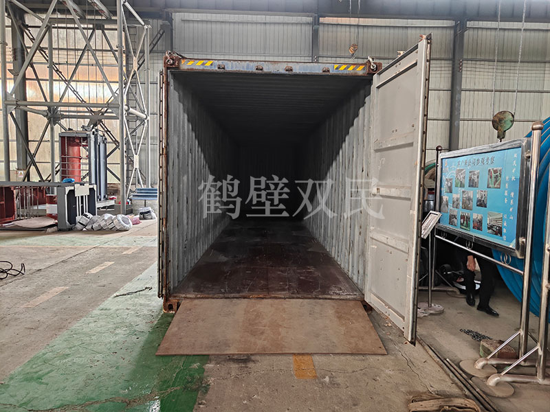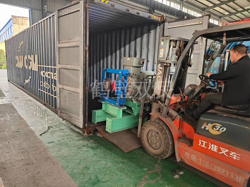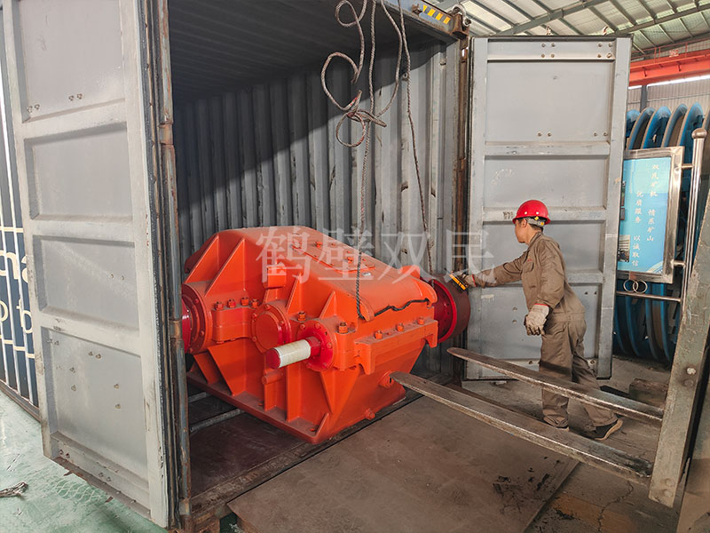 工人师傅将矿用提升绞车装箱完成之后,由卡车运送集装箱至港口,顺利发往菲律宾客户矿区。