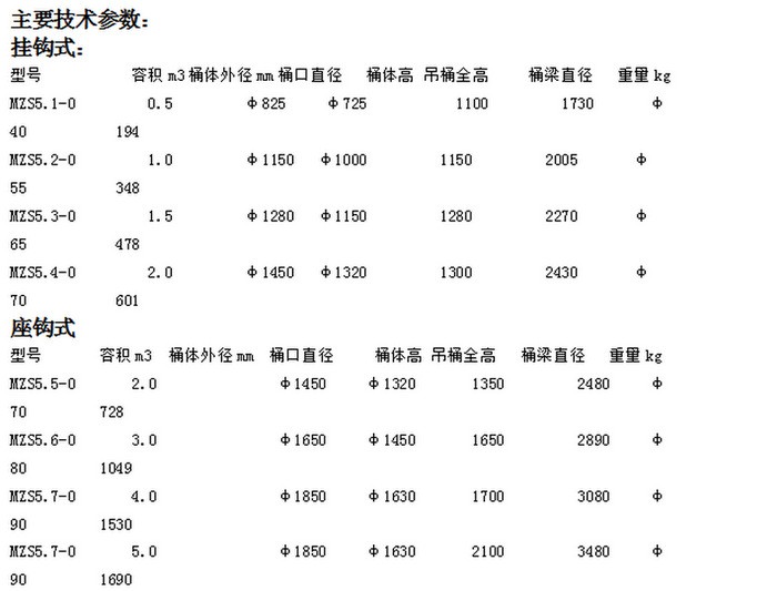 按结构形式分为:矿用吊桶,矿用吊桶,底卸式吊桶,挂钩式吊桶,座钩式吊桶