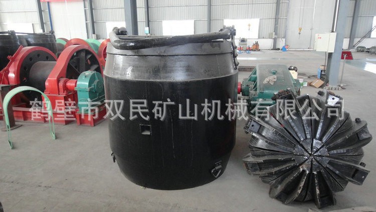 矿用吊桶使用范围及特点:吊桶是立井井筒开凿期间提升矸石、升降人员和材料的主要容器。当井筒涌水量小于6m³/h时,还可作排水用。