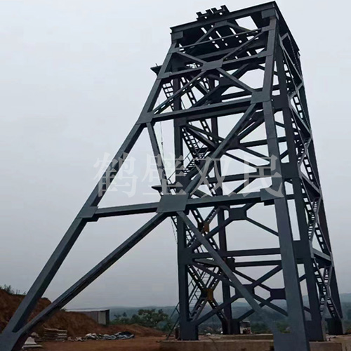 斜撑式永久井架主要特征和优点: 单斜撑式井架是随着落地式多绳地上计技术发展而产生的,具有造型独特,结构简单,受力合理,工程量少,经济实用,技术进步的特点。