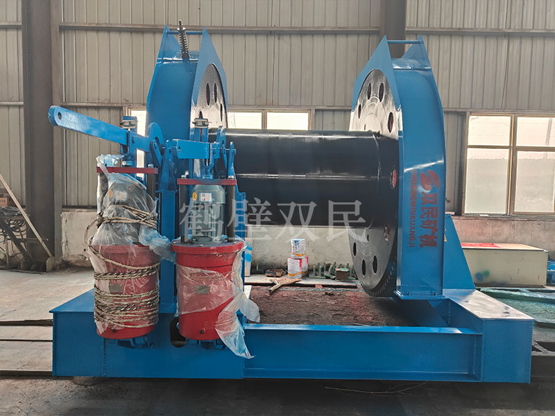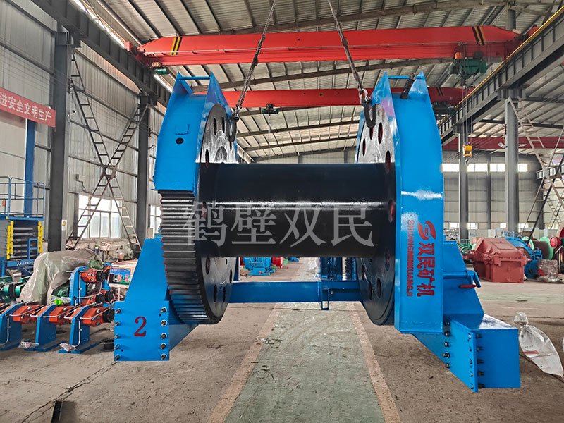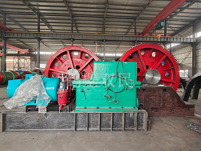 本绞车主要用于煤矿、金属矿和非金属矿竖井井筒掘进时悬吊吊盘、水泵、水管、注浆泵、风筒等掘进设备和张紧稳绳,该绞车系双钢丝绳悬吊。将减速机上的差动手把放在差动位置,若张紧稳绳,可使两根稳绳的张紧力保持相等;