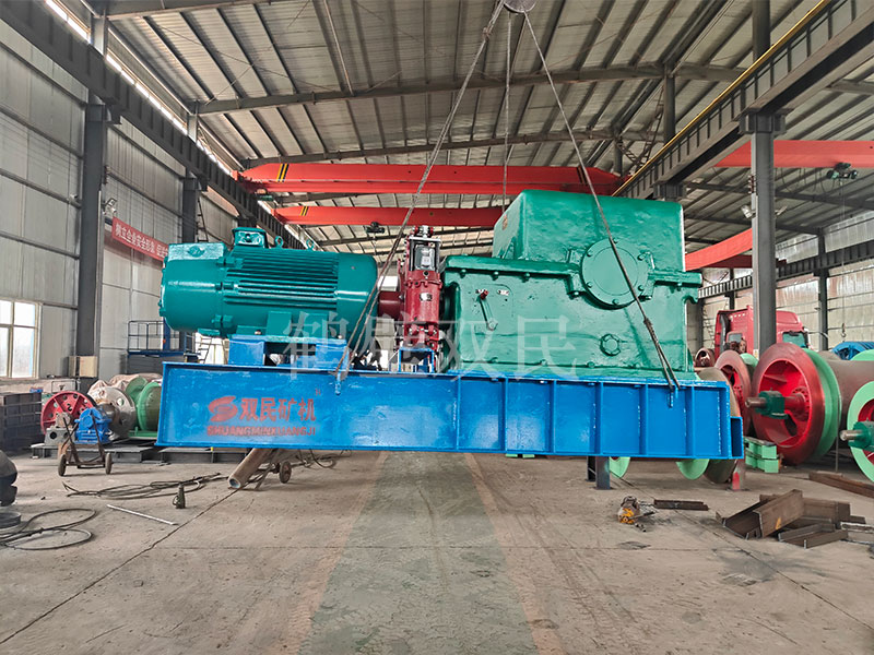 本绞车主要用于煤矿、金属矿和非金属矿竖井井筒掘进时悬吊吊盘、水泵、水管、注浆泵、风筒等掘进设备和张紧稳绳,该绞车系双钢丝绳悬吊。将减速机上的差动手把放在差动位置,若张紧稳绳,可使两根稳绳的张紧力保持相等;若悬吊水管、注浆管、风筒等管类设备,可保证其被悬吊管类设备与地面保持垂直的状态。如果悬吊吊盘等盘状设备,需将其差动手把放在直通位置,才能实现两绳绳速的一致。