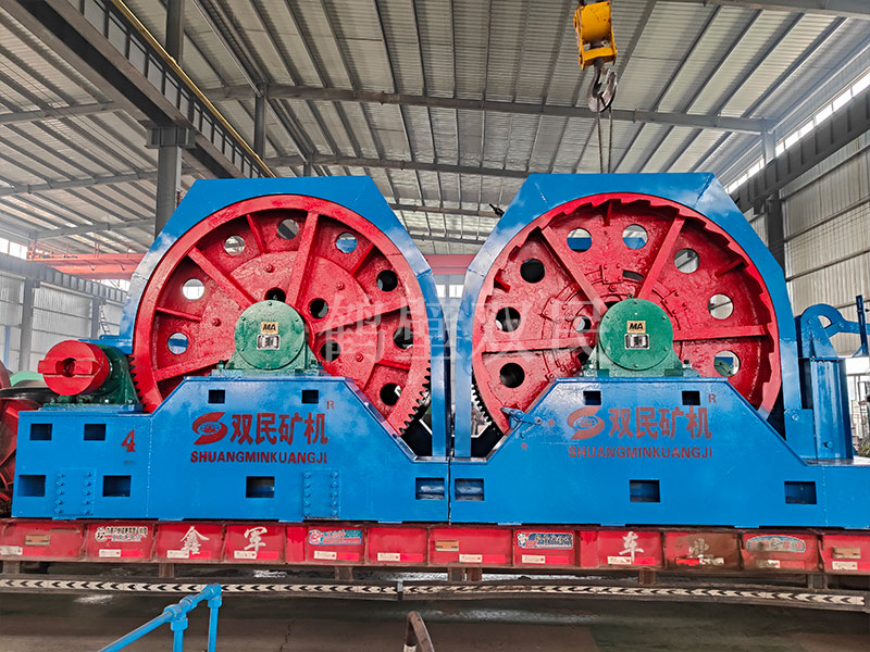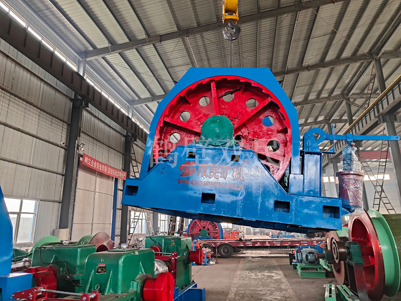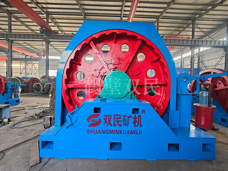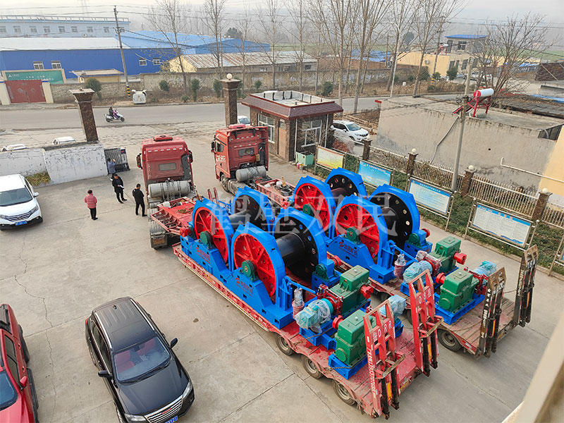 结构特点本绞车主要用于煤矿、金属矿和非金属矿竖井井筒掘进时悬吊吊盘、水泵、水管、注浆泵、风筒等掘进设备和张紧稳绳,该绞车系双钢丝绳悬吊。将减速机上的差动手把放在差动位置,若张紧稳绳,可使两根稳绳的张紧力保持相等;若悬吊水管、注浆管、风筒等管类设备,可保证其被悬吊管类设备与地面保持垂直的状态。如果悬吊吊盘等盘状设备,需将其差动手把放在直通位置,才能实现两绳绳速的一致。
