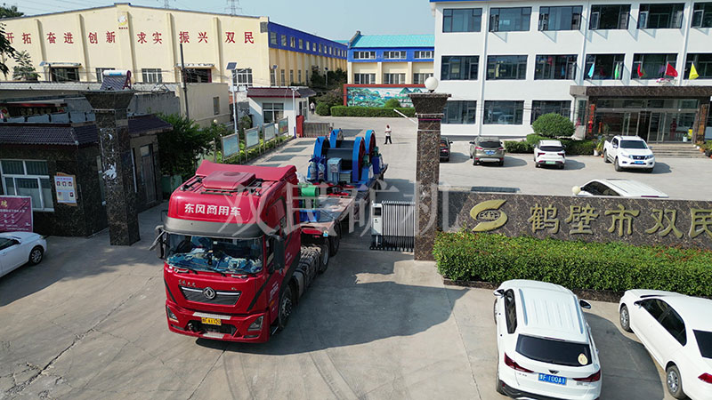 凿井绞车主要用于煤矿、金属矿和非金属矿竖井井筒掘进时悬吊吊盘、水泵、水管、注浆泵、风筒等掘进设备和张紧稳绳,该绞车系双钢丝绳悬吊。将减速机上的差动手把放在差动位置,若张紧稳绳,可使两根稳绳的张紧力保持相等;若悬吊水管、注浆管、风筒等管类设备,可保证其被悬吊管类设备与地面保持垂直的状态。如果悬吊吊盘等盘状设备,需将其差动手把放在直通位置,才能实现两绳绳速的一致。