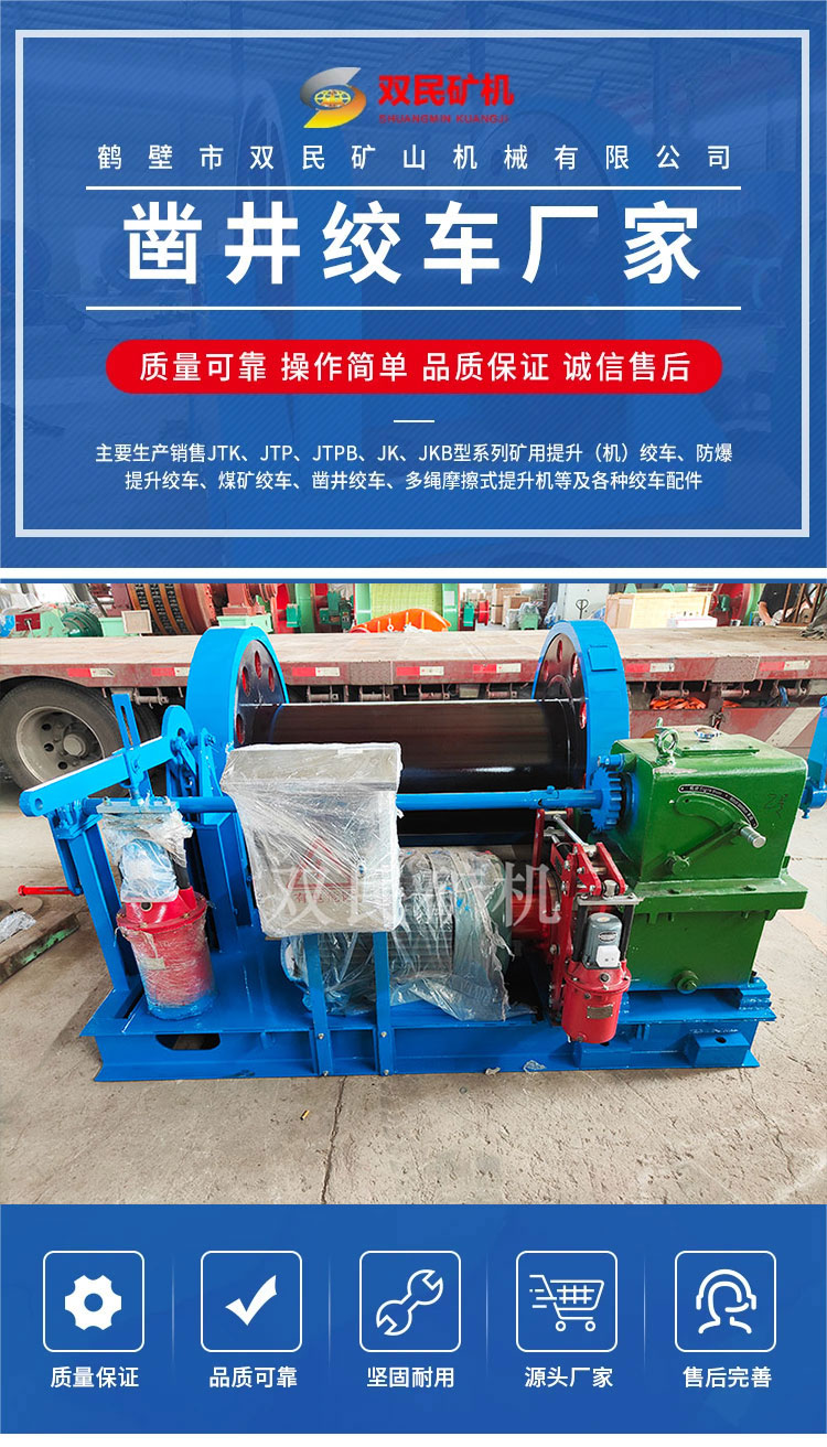 凿井绞车厂家,以制造大型矿山提升设备,电器成套自动化控制系统为主的科研型高科技企业,是国家矿山专用设备及配件产品定点生产单位。主要生产、销售JTK、JTP、JTPB、JK、JKB、JKM、JKMD型系列矿用提升绞车、矿井提升机、多绳摩擦式提升机、JZ型