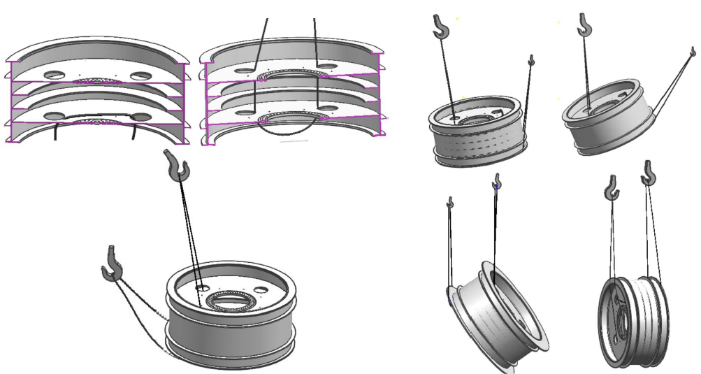 吊点附近的轮子轮缘之间,需用螺纹千斤顶辅助支撑,以防止在起吊中变形;起吊翻转过程中人员与工件要保持足够的安全距离,避免千斤顶坠落伤人。