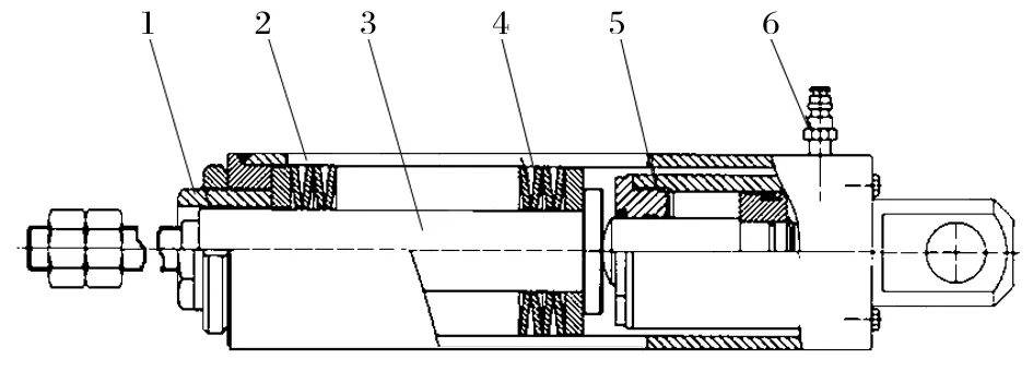 (5)驱动器结构集成化 改造时采用碟形弹簧串联结构(见图 2)。碟簧串和千斤顶置于一个套筒内,液压弹簧驱动器成为一个整体结构(相当于盘式闸的闸头)。该结构更加简单,便于安装、调试与维护,易于实现标准化、集成化、系列化。