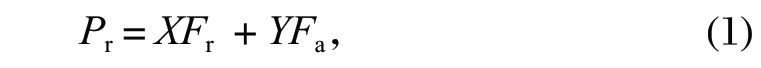 式中:Pr 为联合载荷下轴承径向当量动载荷,N;Fr为轴承径向动载荷,N;Fa 为轴承轴向动载荷,N。
