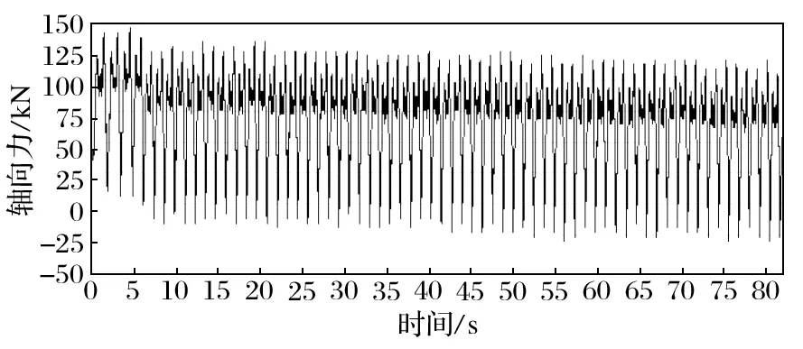 4.2 测试方法获得轴向力 分别对左、右罐重载上提稳定运行工况进行测试,轴向力测试结果如图4、5 所示。